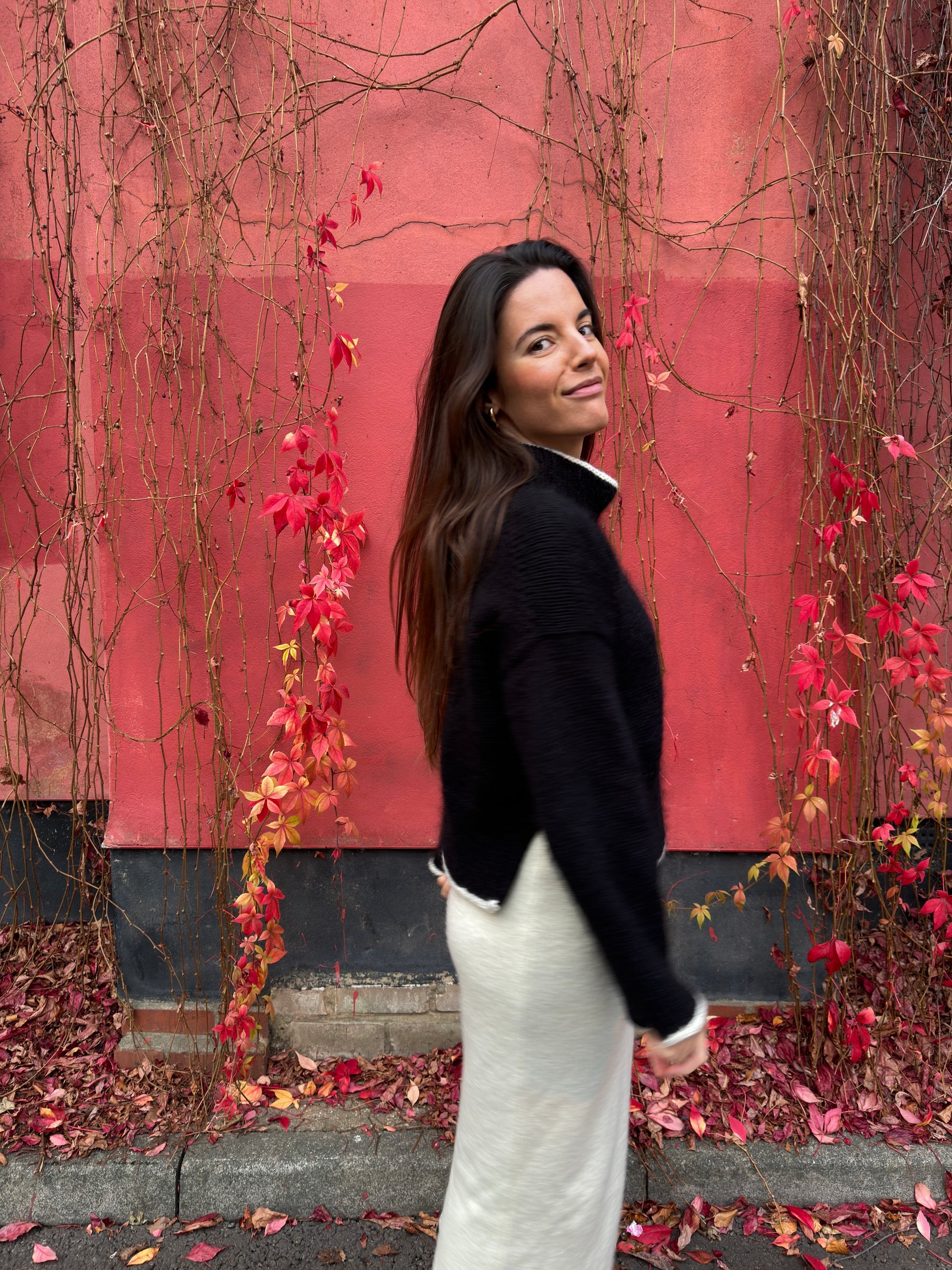 This is a beginner friendly knitting pattern for a wool and mohair blend cropped jumper with a mock neck that’s finished with a blanket stitch or an I cord edge. The jumper is designed to finish around your waist and has two openings on both sides to fit nicely on your body.